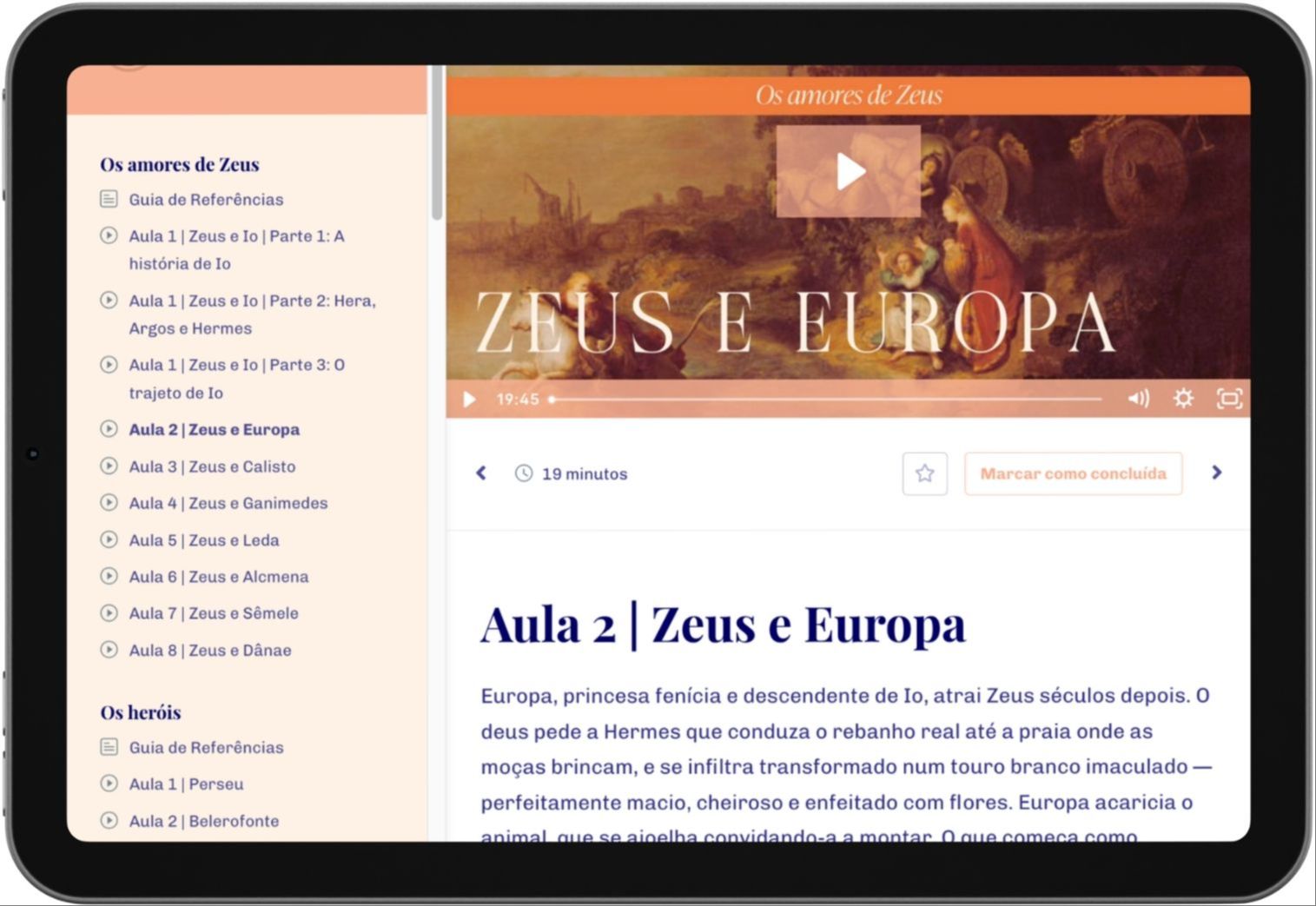 Assine o Plano Deuses agora e tenha acesso imediato a mais de 70 aulas ministradas pelo professor Moreno, gravadas ao longo dos últimos anos (desde o início deste projeto!). Nas aulas, o professor nos conduz por diferentes expressões artísticas daqueles que se dedicaram a representar as cenas emblemáticas da Mitologia ao longo dos séculos. Já são cinco módulos disponíveis: Os amores de Zeus; Os heróis; A saga de Troia; Odisseia e Metamorfoses.